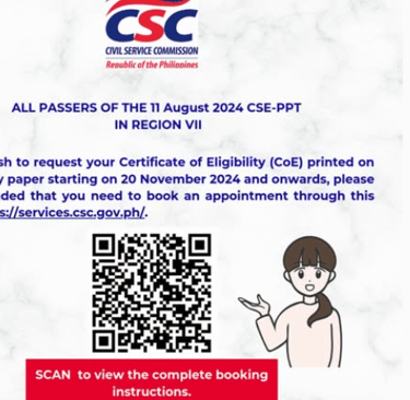 Also, another proof na lahat ng announcements kung paano kumuha ng Certificate of Eligibility ay nasa Facebook pages ay itong post ng CSC Region 7 ng nakaraang taon na nagsasabing kailangan muna mag online appointment sa CSC E-SERVE bago magpunta.